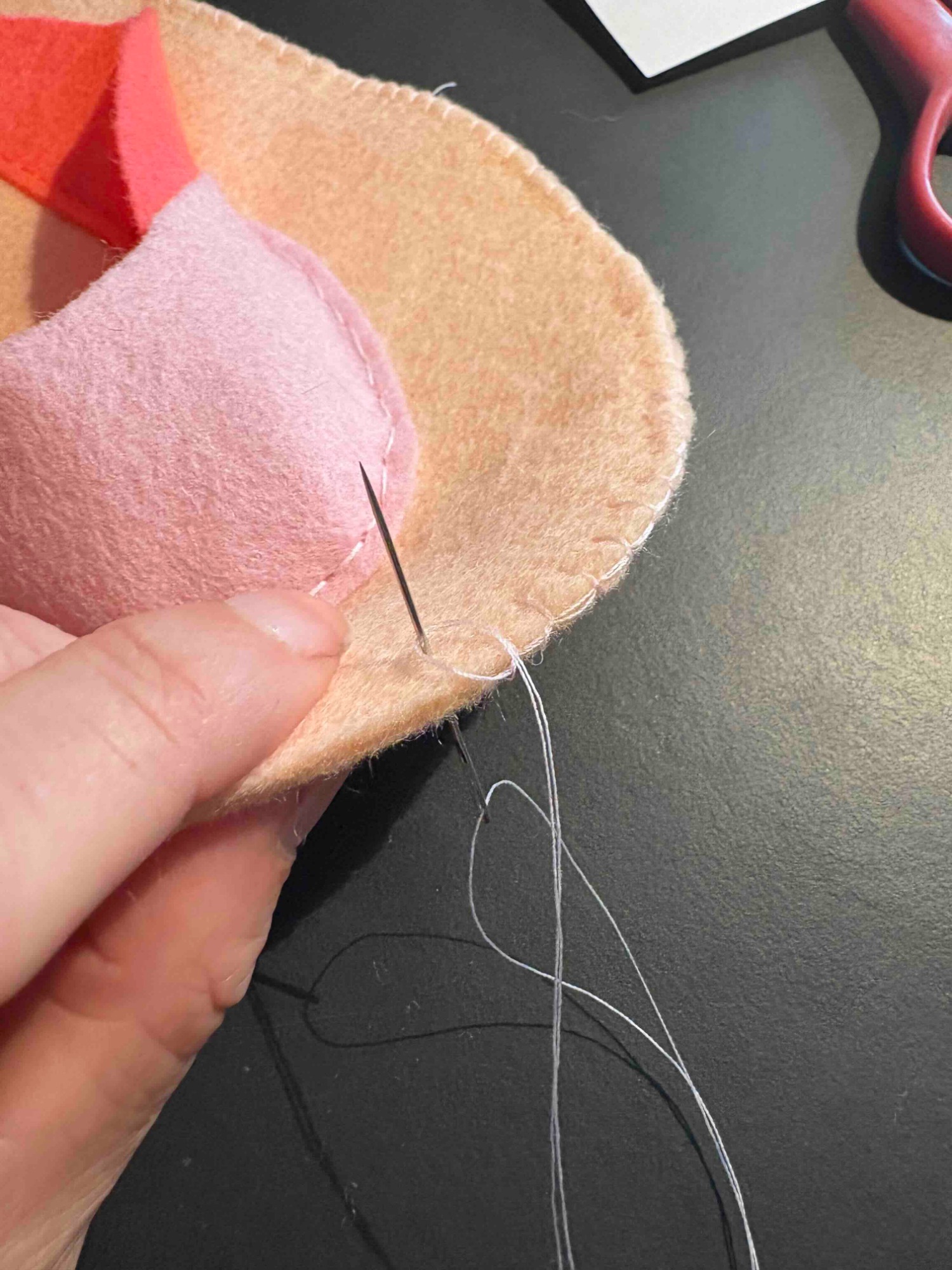 Steek in aan het eind van de vorige steek en steek weer naar boven een eindje voorbij het eind van de steek die je maakt.